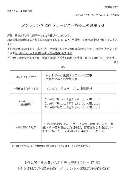 ◆影響対象:全加盟店◆