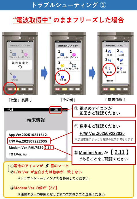2025/11/27 端末バージョンUPのご案内 ↑クリックして手順をご確認ください↑ ※一部の加盟店様へは、先行してバージョンアップのご案内を行っております。既にバージョンアップを完了頂いている加盟店様は、改めてバージョンアップをして頂く必要はございません。 バージョンアップがうまくいかなかった場合 tagPlaceholderカテゴリ: お知らせ