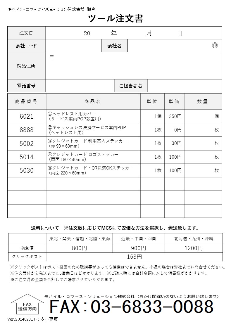 各種手続きに必要な申請書・依頼票やツールの注文書などをご用意しております。ダウンロードして、FAXでご注文・ご依頼ください。