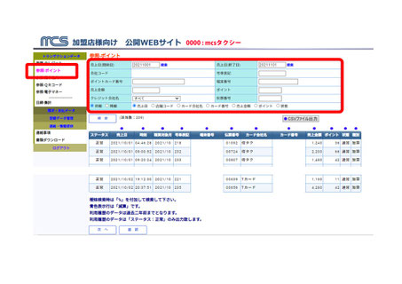 ステータス「異常」のデータは、ポイント加算ができていない(エラー)データです。