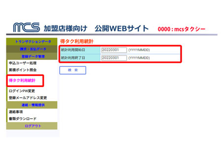 加盟店公開WEBで得タク会員の個人情報(会員データ)を閲覧・検索するには、別途申込が必要です(無料)。得タクポイントサービス会員情報提供希望申込書兼誓約書にてお申込みください。