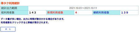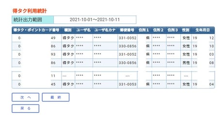 「申込ユーザー処理」から、得タク会員情報の検索・確認ができます。(御社発行の得タクポイントカードをご利用頂いているユーザーのみ)