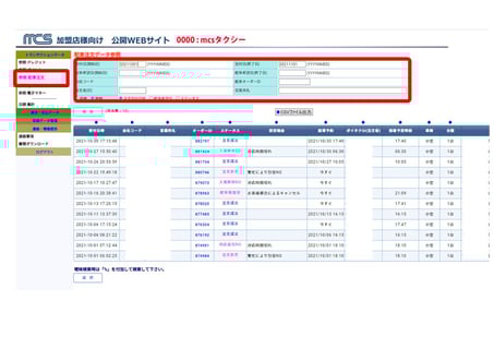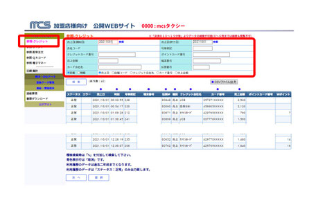 閲覧したい検索内容(日時や号車等)を入力し「検索ボタン」をクリックすると、決済結果が表示されます。