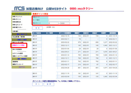 累積ポイント照会は、お客様から「ポイントどれくらい貯まった?」等のご質問があった際に、ご活用頂ける機能ですが、個人情報の確認など煩雑だと思いますので、タクシー会社様でご対応頂くより、「得タクお客様センター(0120-205-226)へ電話してください」とご案内頂く方がスムーズです。