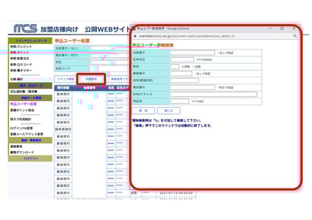 お申込みを頂いていない加盟店様では、お客様のお名前等は***で表示されます。