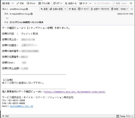 取消処理が完了すると、加盟店様の登録メールアドレスに完了報告が自動送信されます。