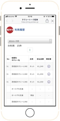 契約しているタクシー会社に対して、配車依頼が行えます。