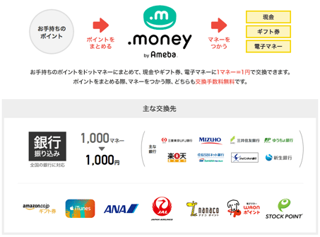 ※ポイントは、Amebaが提供しているドットマネーへ変更後、お好きなポイント・マイル・現金等へ交換できます。